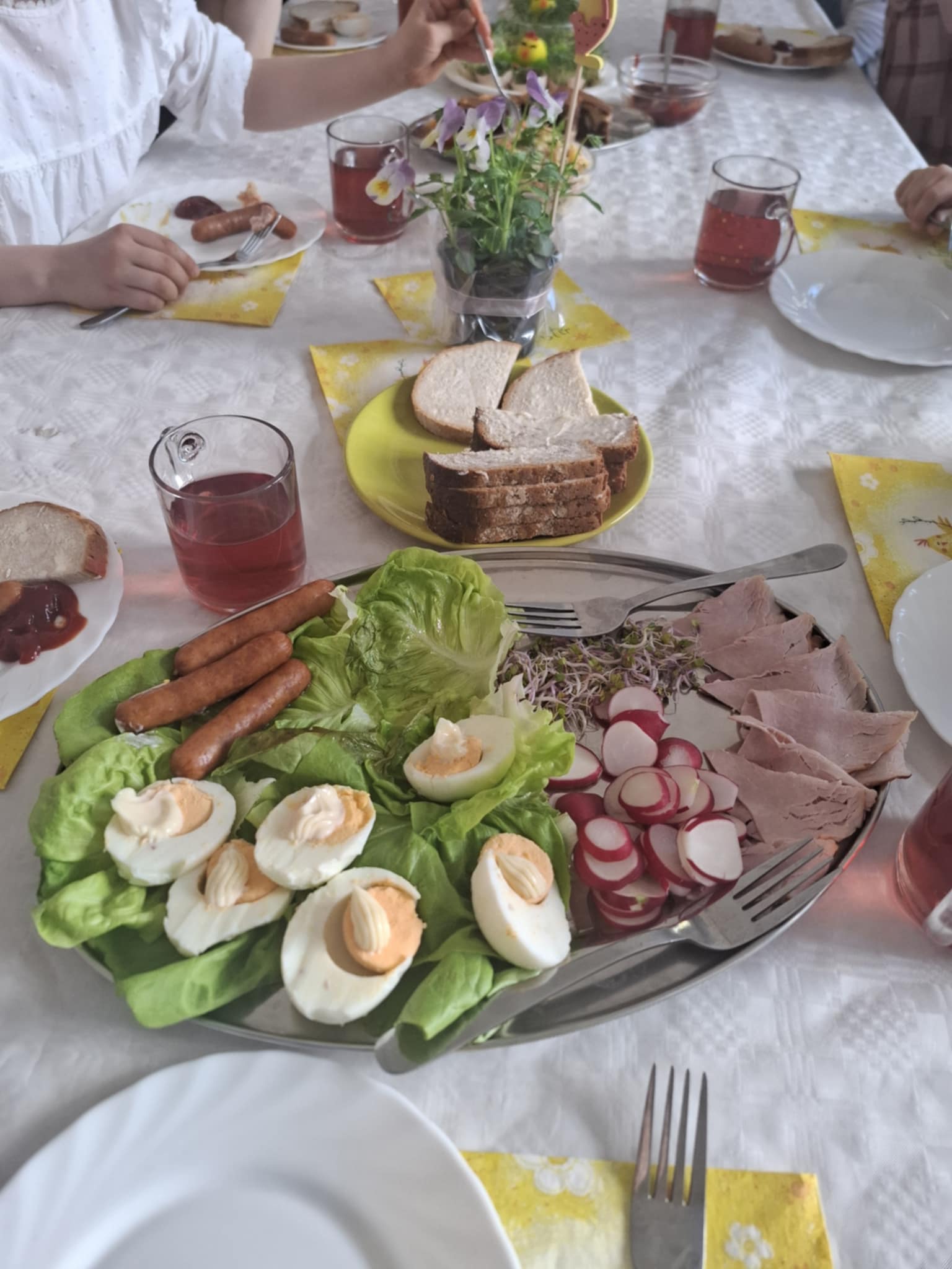 | Czwartek 26.03. Kanapki Zrób to sam! Pieczywo pszenno-żytnie, pieczywo razowe z ziarnami, masło, polędwica drobiowa, konfitura, sałata lodowa, rzodkiewki, ogórek zielony, herbata malinowa, owsianka na mleku | Szwedzki stół Talerz warzywnych rozmaitości (rzodkiewki, kolorowe papryki, sałata lodowa), rogalik, masło, herbata czarna z cytryną | Zupa pomidorowa z makaronem Tak, będzie dolewka! ☺ Pieczona ryba z ziemniakami i surówką z białej kapusty, marchewki i kukurydzy, kompot ze śliwek |