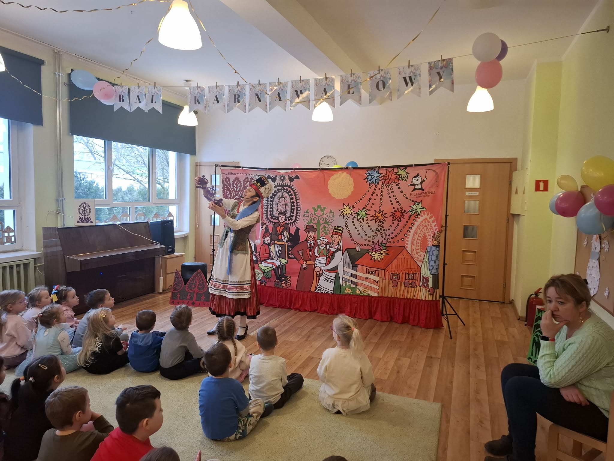 W listopadzie dzieci uczestniczyły w koncertach, bohaterem pierwszego była gadatliwa mandolina- Lola Mandola, natomiast w czasie drugiego przedstawienia dzieci miały okazję spotkać się z tancerzami Zespołu Pieśni i Tańca Łany i posłuchać ciekawych opowieści o dawnych sposobach spędzania zimowego czasu.